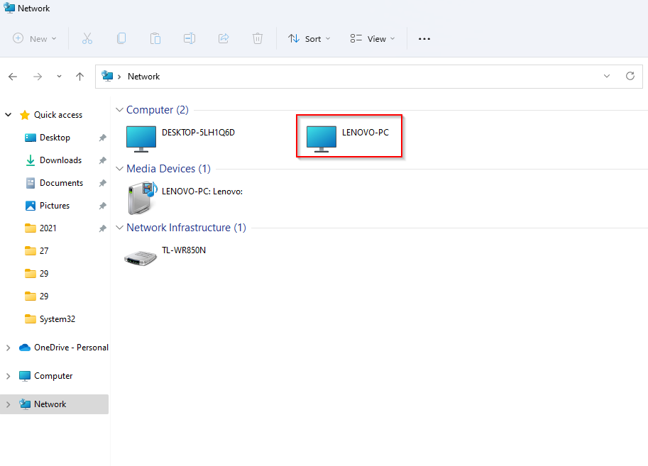 - Bu noktaya kadar tartışılan ayarlar her iki bilgisayara da uygulanmalıdır. Bittikten sonra, Dosya Gezgini’ni başlatın ve Sol bölümden Ağ’ı seçin. Diğer bilgisayarı burada görmelisiniz.