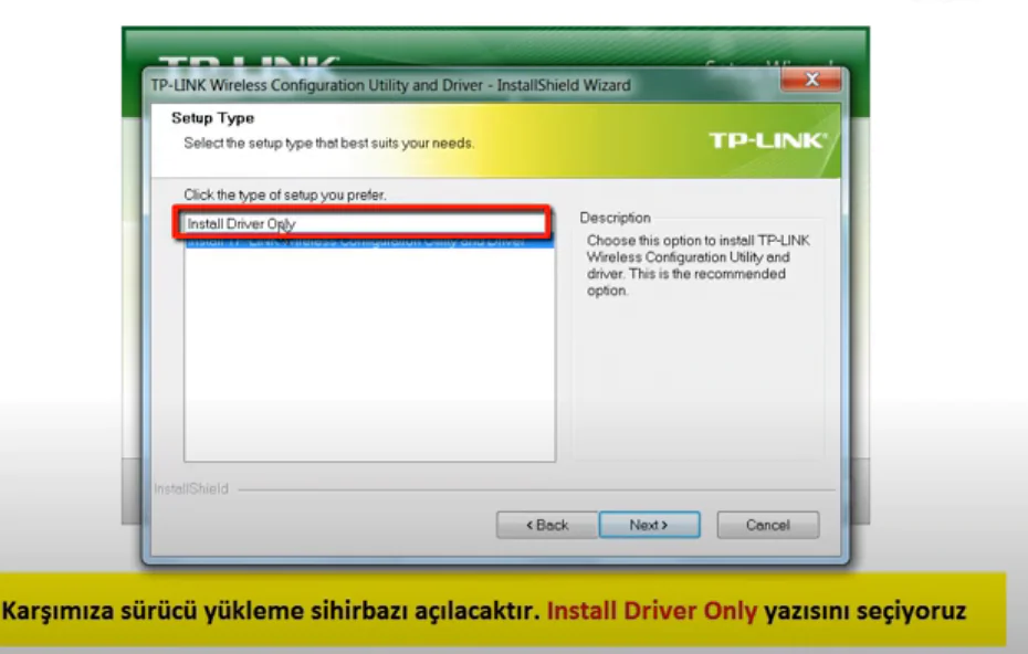 açılan menülerde sürücü ve yazılımı kurmak veya ınstall driver utility sekmesine tıklayınız gelen menüden next tıklayın karşımıza sürücü yükleme sihirbazı acılacaktır . ınstall driver only yazısını şeçiyoruz .