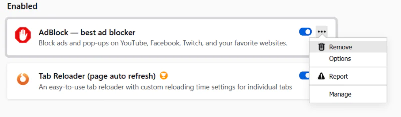 - Adblock’u kaldırarak devre dışı bırakmak için Kaldır’ı da tıklayabilirsiniz.