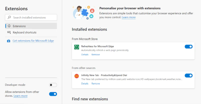 - Çok sayıda Edge uzantınız varsa, arama kutusuna AdBlock girmek yardımcı olabilir.