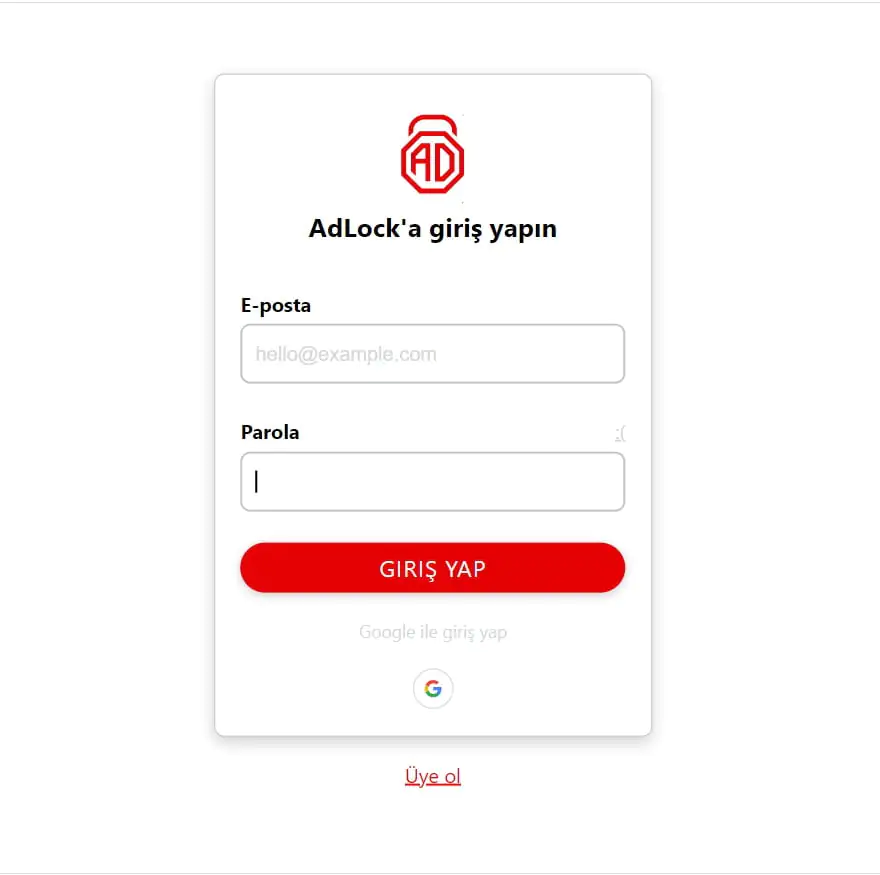 Sonrasında https://my.adlock.com/registry sayfasına girip üyelik oluşturmalısınız.Üyelik işlemlerinizi tamamladıktan sonra https://my.adlock.com/ adresine girip hesabınıza giriş yapın.