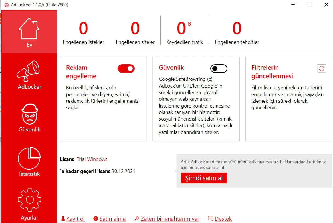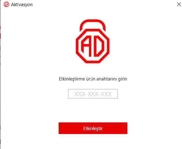 Öncelikle AdLock programı için bir ürün anahtarına sahip olmanız gerekir.