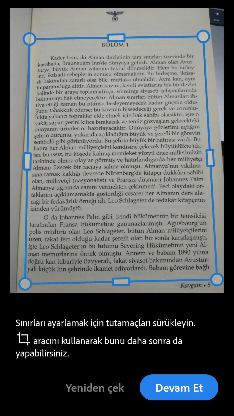 Bu şekilde tarayacağımız kısmı resim içerisinde işaretliyor ve “devam et” seçeneğine tıklıyoruz.
