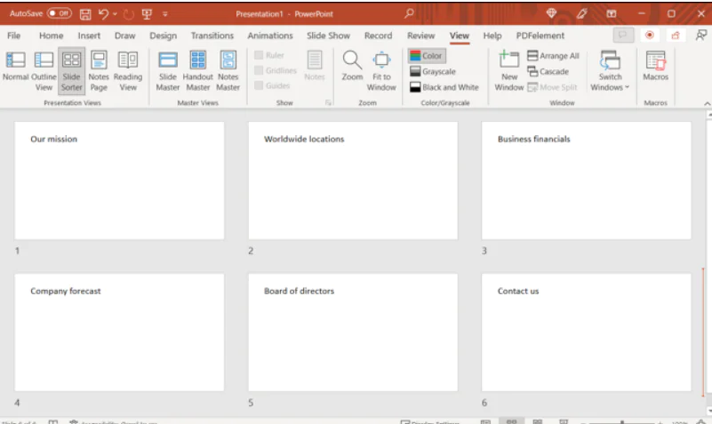 Bir süre sonra, anahattınızın PowerPoint’e yüklendiğini göreceksiniz. Belirtildiği gibi, anahattın her satırı kendi slaytıdır.