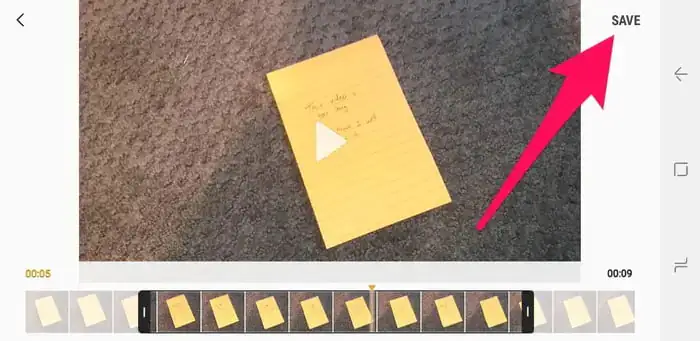 - Daha sonra, Galeri (Gallery) uygulamasının sağ üst köşedeki KAYDET (SAVE) butonuna dokunun.