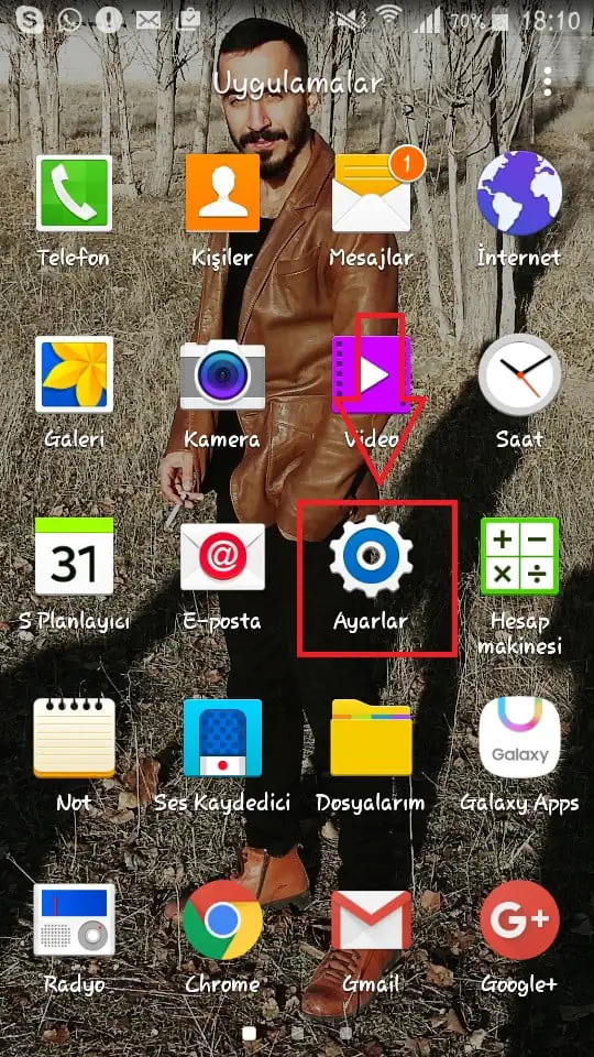 • Android Geliştirme Ayarlarını Açma işlemlerimizle ilgili ilk olarak telefonumuzun “Ana Menü” ekranından “Uygulamalar” ekranına geçip, bu ekranda “Ayarlar” menüsüne giriş yapıyoruz.