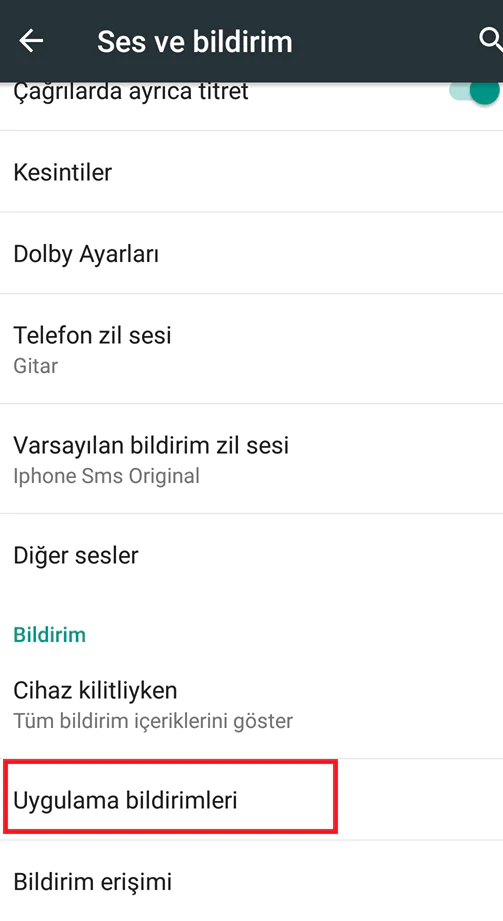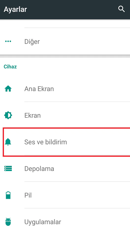 - Ses ve Bildirimler kısmına giriş yapalım.