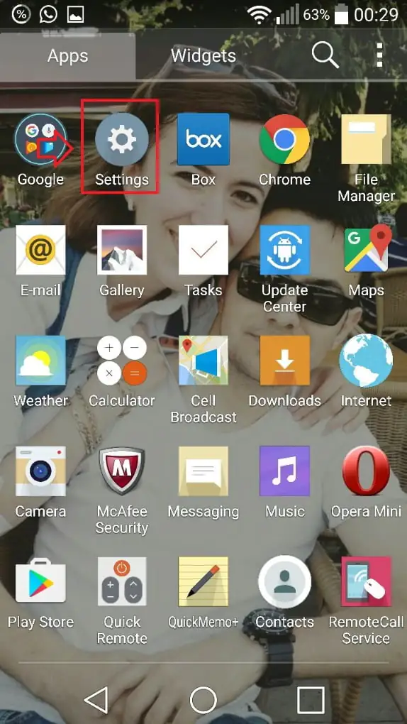 • Öncelikli olarak telefonumuzun “Ana Menü” ekranından, “Uygulamalar” ekranına geçelim ve bu ekranda “Ayarlar” menüsüne giriş yapalım; aşağıdaki resimde görüldüğü gibi.