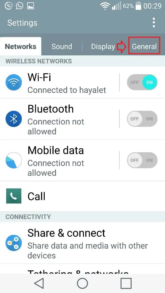 “Ayarlar” menüsüne giriş yaptıktan sonra açılan sayfada “General” sekmeye dokunalım.