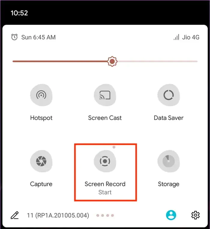 - Yukarıdaki işlemi tamamladıktan sonra tekrar Hızlı Ayarlar (Quick Settings) paneline gelmek için, parmağınızı ekranın üst kısmından 2-kez aşağı kaydırın ve biraz önce eklediğiniz Ekran Kaydı (Screen Record) simgesine dokunun.