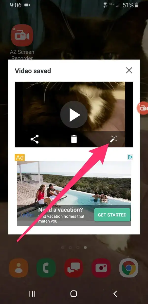 - Ekran kaydı videonuz tamamlandığında, otomatik olarak Android cihazınızın (fotoğraf ve video) galerisine kaydedilir. Videoyu düzenlemek istiyorsanız, videodaki sihirli değnek simgesine (en sağda) dokunun.