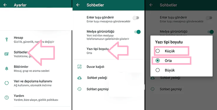 ETİKETLER:mobil ayarlarınasıl yapılırwhatsappyazı boyutu