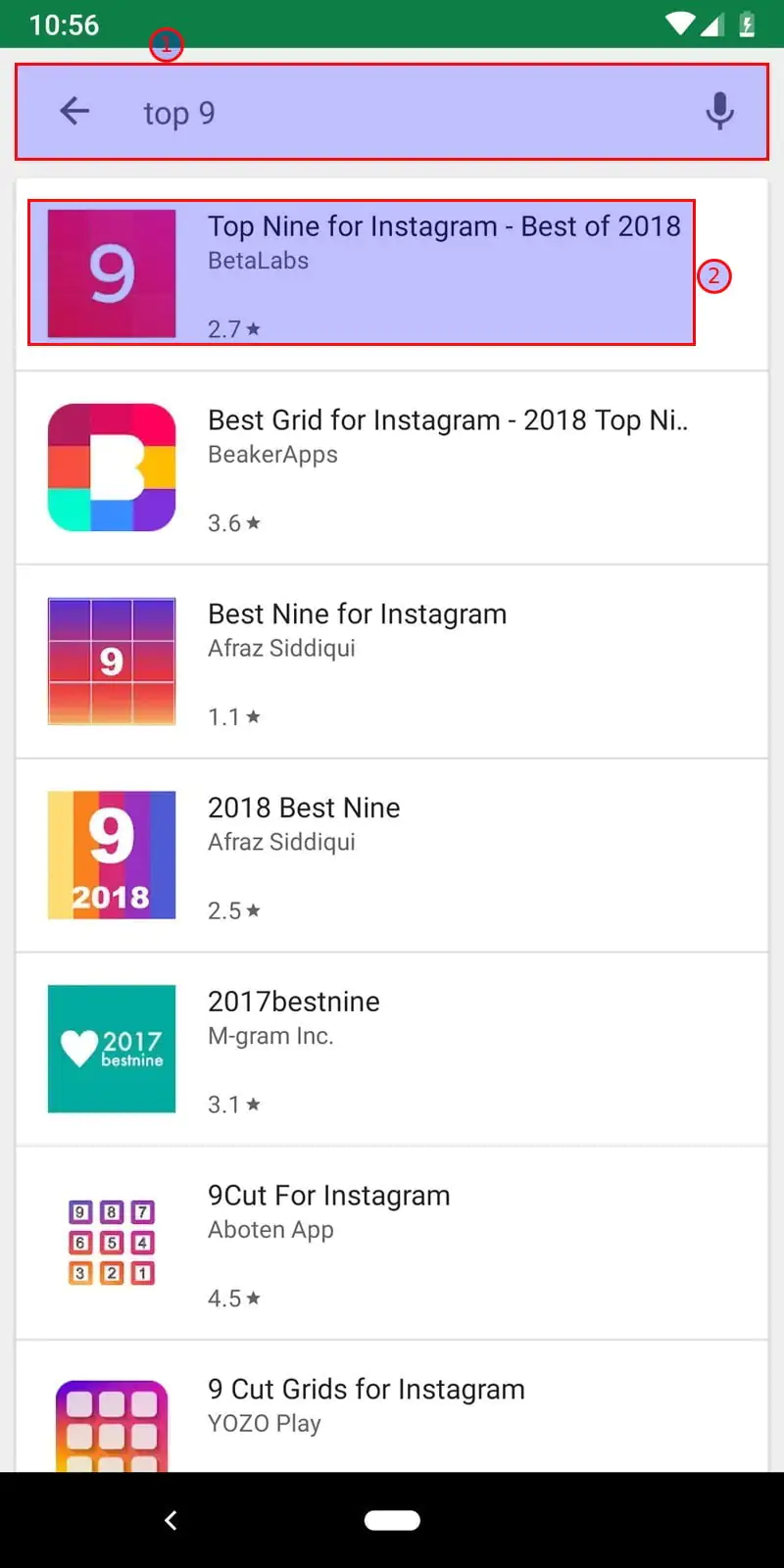 Öncelikle Top Nine isimli uygulamayı indirmemiz gerekiyor.