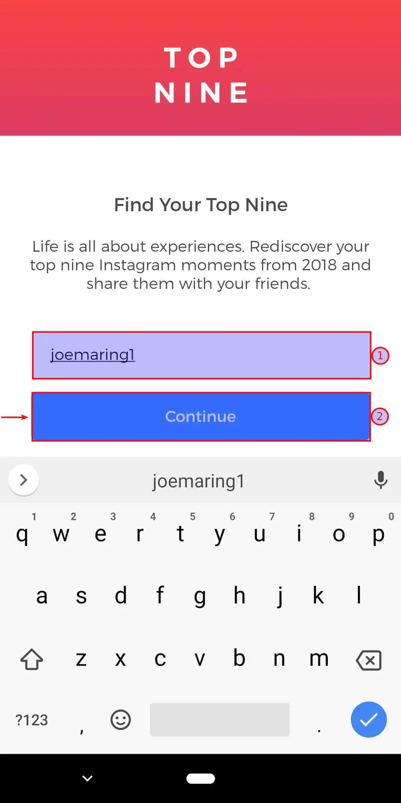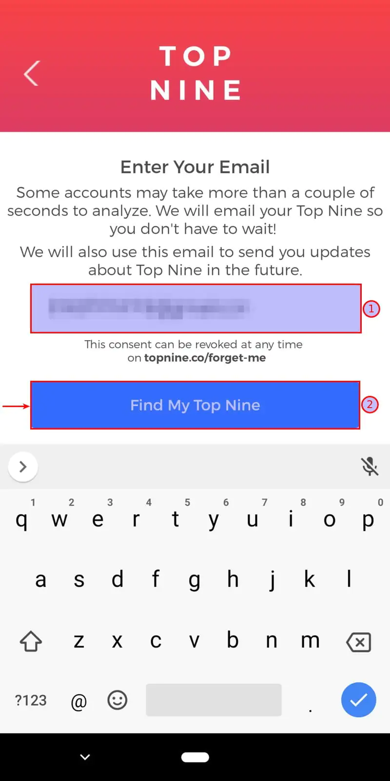 • Bir sonraki ekranda Instagram hesabınızda kayıtlı e-posta (e-mail) adresinizi girin ve daha sonra Find My Top Nine butonuna dokunun.