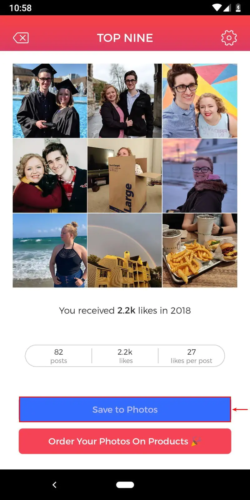 En popüler ve en beğenilen 9 fotoğrafınız tek bir (resim) dosya(sı) olarak kaydedildi; bu da, diğer fotoğraflar gibi, 9 en popüler ve en beğenilen fotoğrafınızı içeren bu dosyayı Instagram’da paylaşabileceğiniz anlamına geliyor.