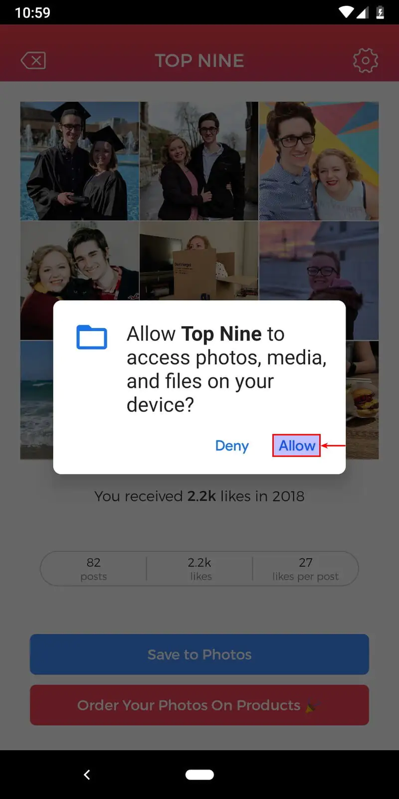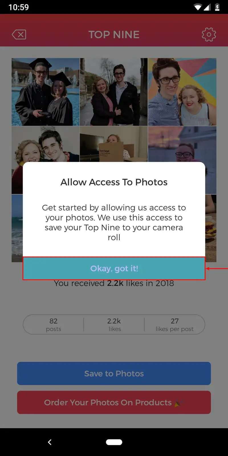 • Top Nine uygulamasının fotoğraflarınıza/dosyalarınıza erişmesine izin verin.