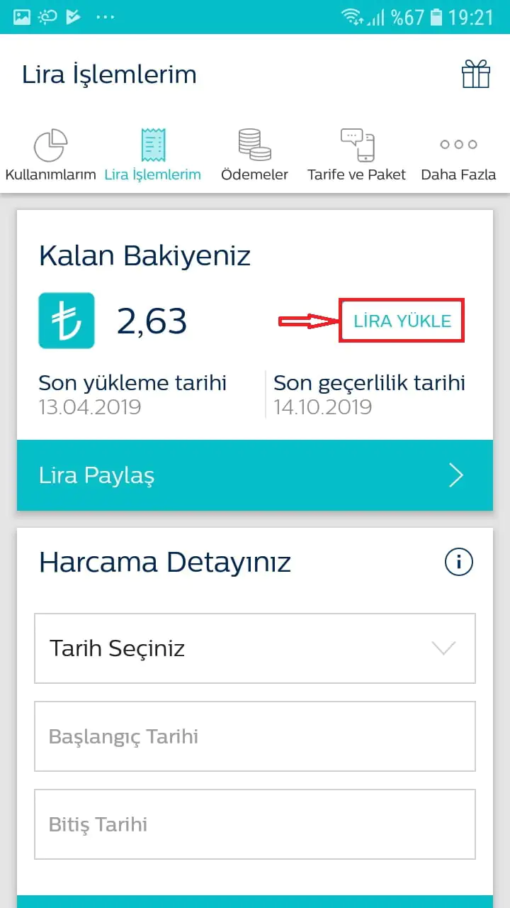 • Gelen ekranda ‘LİRA YÜKLE’ linkine (bağlantısına) dokunuyoruz.