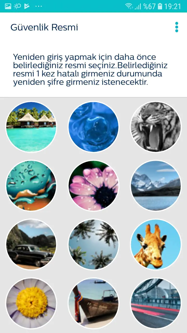 • SMS ile size tek kullanımlık bir şifre gönderilecek. Bu şifre ile oturum açtıktan sonra, bundan sonraki oturumları güvenlik resmi seçerek açmanız önerilecek (kolaylık açısından). Bu seçeneği kullanmanızı öneririm. Bir güvenlik resmi seçiyoruz ve daha sonra bu güvenlik resmi ile tekrar oturum açıyoruz.