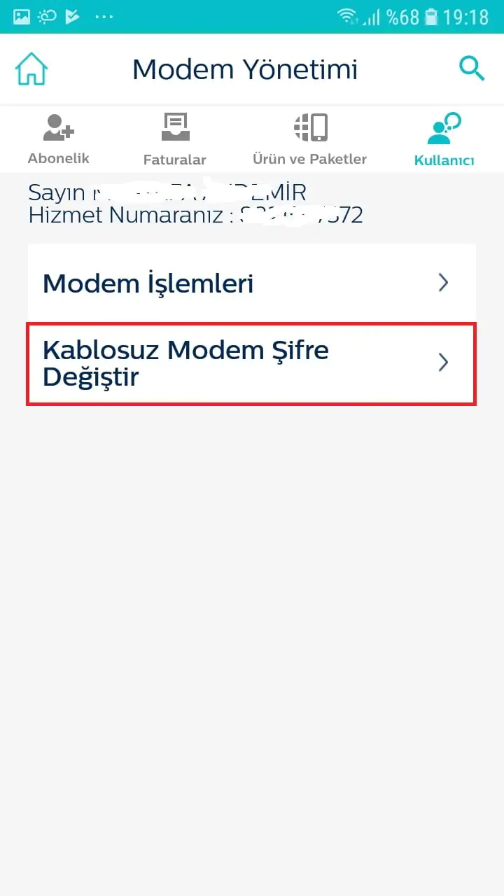 • Gelen sayfada ‘Kablosuz Modem Şifre Değiştir’ seçeneğine (menüsüne) dokunuyoruz.