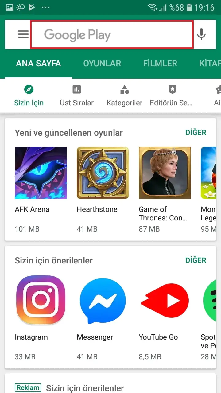 • Öncelikle telefonumuzun mobil verisini (mobil internetini) veya kablosuz bağlantı özelliğini açıp, internet erişimini aktif hale getiriyoruz ve daha sonra uygulama marketi uygulamasını (Google Play Store, App Store) açıyoruz.