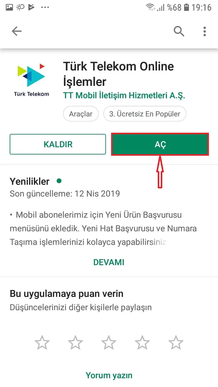 • Gelen ekranda ‘YÜKLE’ butonuna dokunarak uygulamayı telefonumuza indirip, kuruyoruz. Kurulum tamamlandıktan sonra ‘AÇ’ butonuna dokunup, uygulamayı başlatıyoruz.