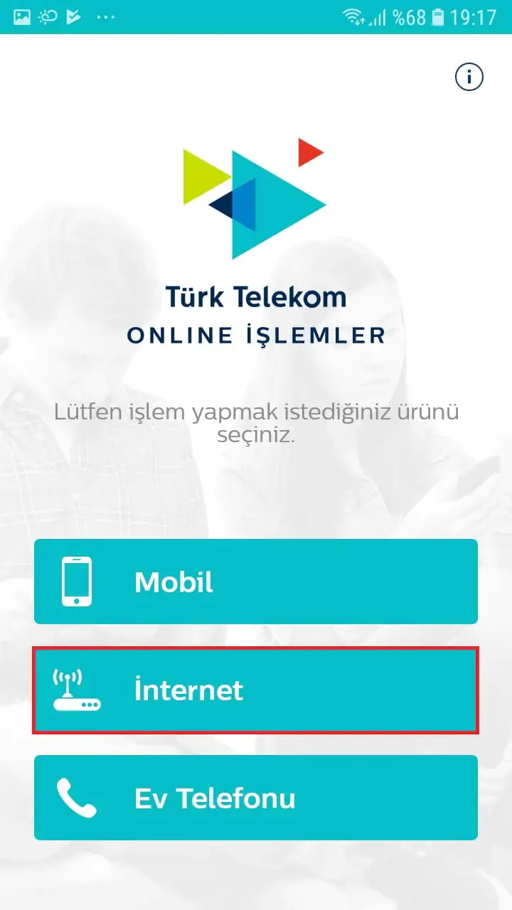 • Uygulamayı Türk Telekom (Avea) Mobil (GSM) hattınız, ADSL/VDSL ev/iş internet hattınız ve sabit telefon hattınız için kullanabilirsiniz; bu hatlarınıza ait ayarları, paketleri vs. ayarlayabilir, düzenleyebilirsiniz. Biz modemimizin kablosuz ağ adını ve şifresini değiştirmek için ‘İnternet’ butonuna dokunup, işlemlerimize devam ediyoruz.