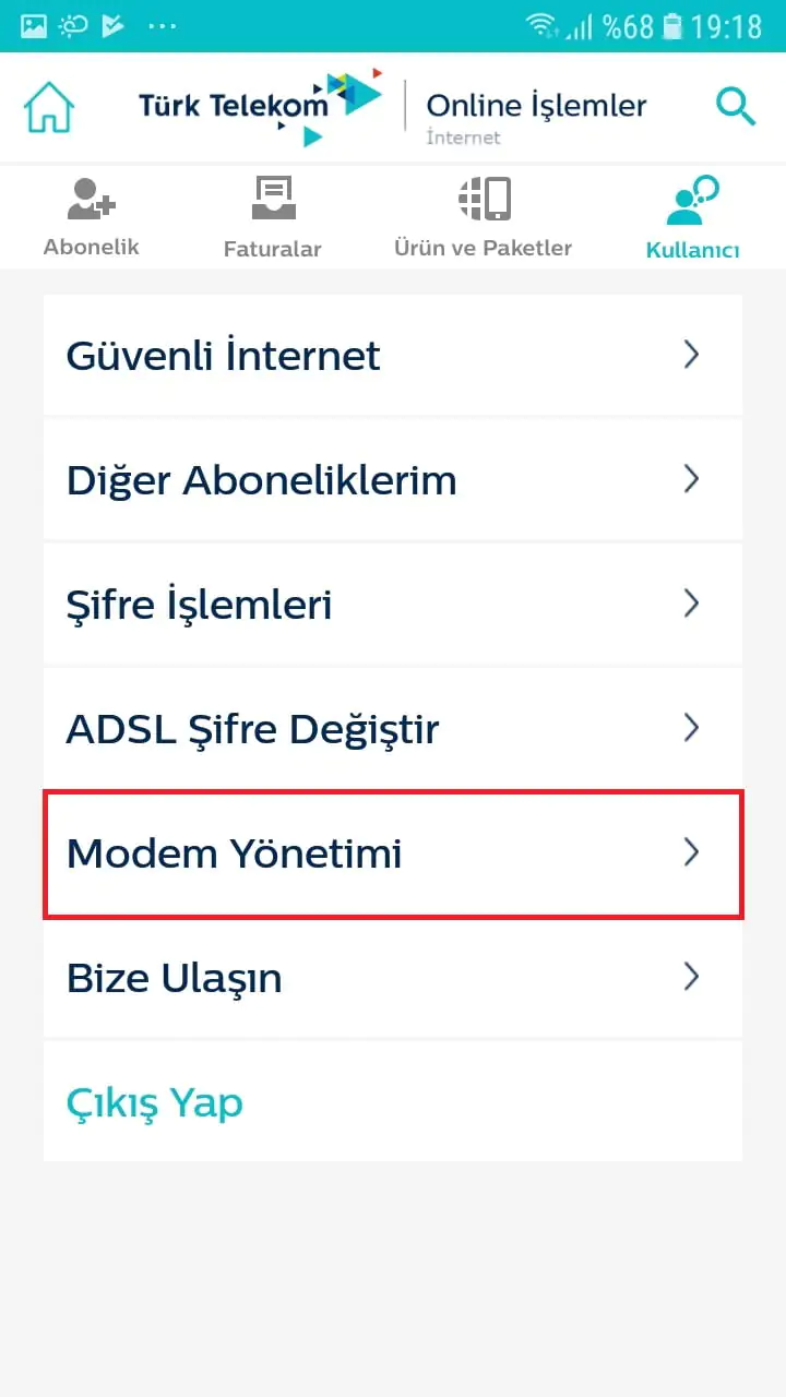 • Gelen ekranda ‘Modem Yönetimi’ seçeneğine (menüsüne) dokunuyoruz.