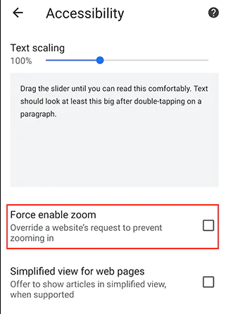 Android’de Chrome’da Zorla Yakınlaştırmayı Etkinleştir