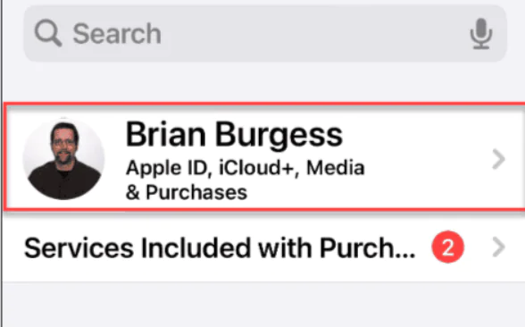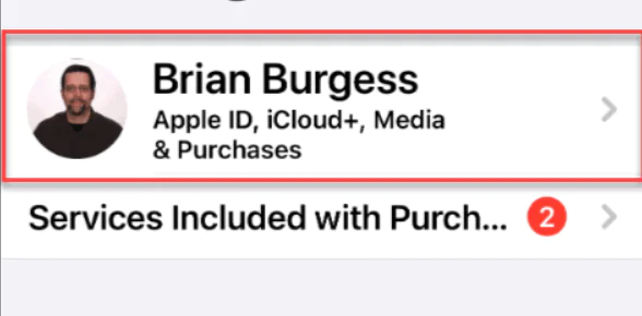 • Ekranın üst kısmındaki Apple profil adınıza dokunun.