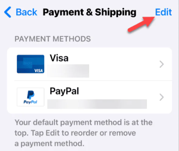 Artık abonelikler ve diğer satın alma işlemleri için yeni ödeme yönteminiz girildiğine göre eskisini kaldırmak isteyebilirsiniz. Neyse ki bu seçenek birkaç dokunuş ötede.
