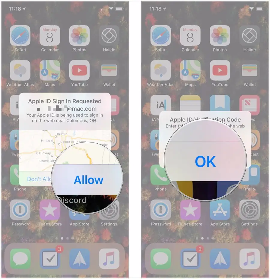 - iCloud cihazlarınızda(n birinde) açılan açılır pencerede ‘İzin Ver (Allow)’ seçeneğine (bağlantısına) dokunun.