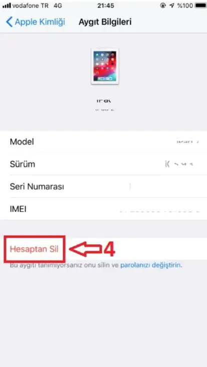 • Sonrasında ise seçtiğimiz cihazın Apple cihazımız ile ilişiğini tamamiyle kesmek için cihazı sil tuşuna basmamız yeterli olacaktır. Bu işlemin ardından ilgili cihazın içeresinden yine aynı menü üzerinde bulunan Çıkış butonunu da kullanarak ilgili Apple cihazından Apple hesabımızı tamamen kaldırabiliyoruz.