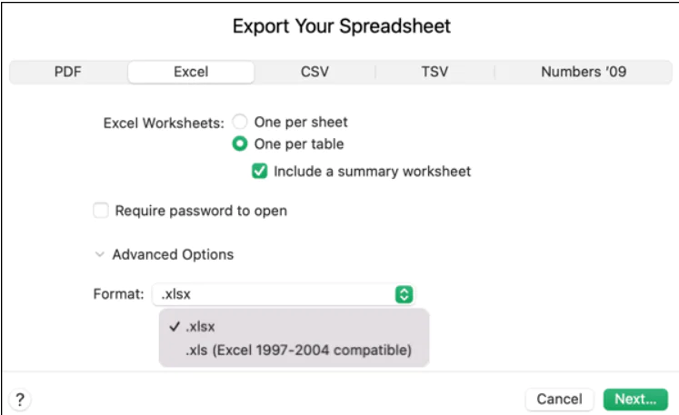Mac’te Numbers’ı Excel’e dönüştürmek kolaydır ve dosya alıcısının bunu yapmasına gerek kalmaz.