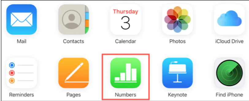 iCloud.com’u ziyaret edin ve oturum açın. Mevcut uygulamalardan Numbers’ı seçin.