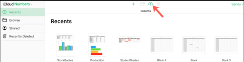 En üstte, yukarı oklu bulut olan Yükle düğmesini tıklayın.