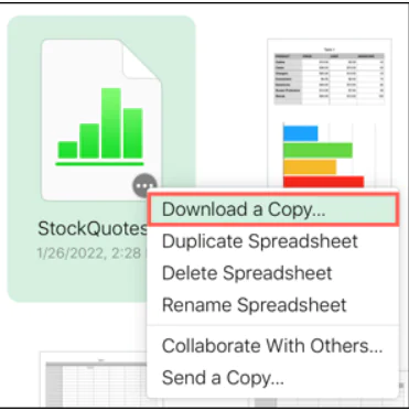 Dosyayı bilgisayarınızda düzenlemek için Excel formatında indirmeyi tercih ederseniz dosyanın sağ alt köşesindeki üç noktayı tıklayın. “Bir Kopya İndir”i seçin.