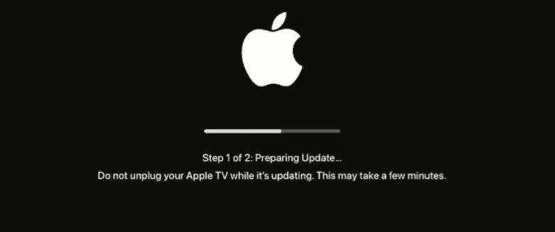 •  bunları fabrika ayarlarına döndürmeye başlarken bir ilerleme çubuğu göreceksiniz. Bu işlem biraz zaman alabilir ve Apple TV, sıfırlamayı tamamlamak için birkaç kez yeniden başlatılır. Ayrıca, tüm süreç boyunca bir güç kaynağına takılı kaldığından emin olun.