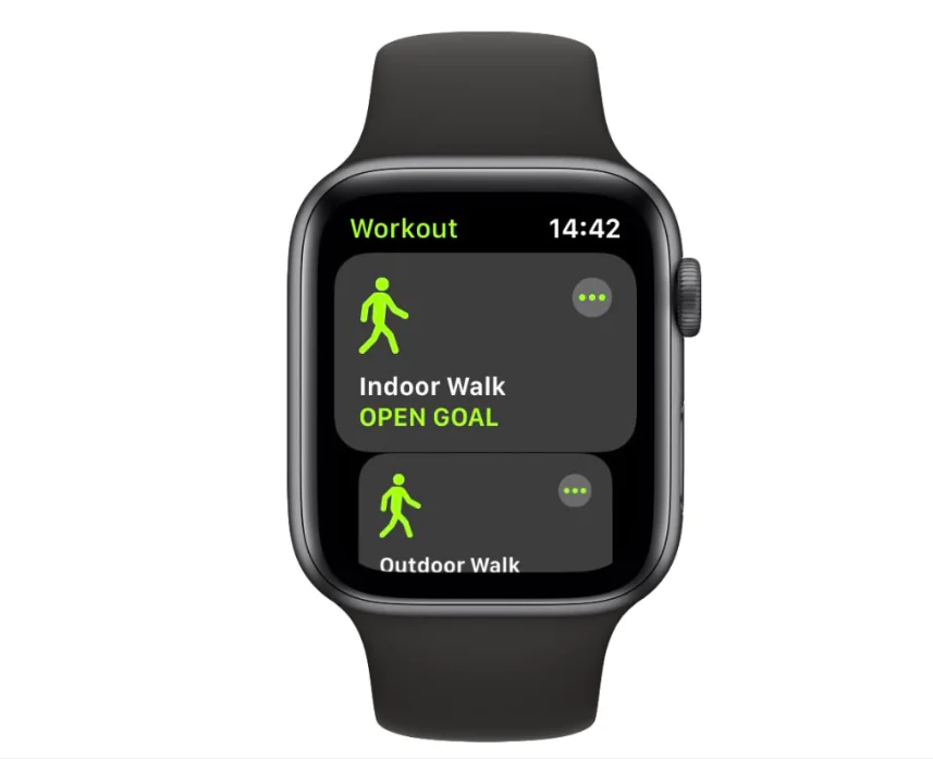 • Apple Watch’ta Antrenman uygulamasını açın. Ardından, yürüyüş veya koşu gibi dış mekan aktiviteleri için uygun seçeneği seçin.