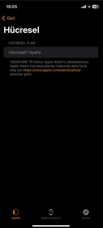 • Birden fazla hücresel plan ekledikten sonra, Apple Watch’da “Hücresel” bölümünden bu planları yönetebilirsiniz. İstenilen planı seçip etkinleştirebilir veya devre dışı bırakabilirsiniz.