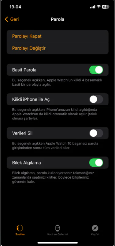 Apple Watch Parola Ayarları