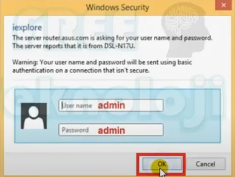 • Öncelikle bir bilgilsayar, akıllı telefon veya tablet ile modeme kablolu veya kablosuz olarak bağlanalım ve ardından boş bir internet sayfası (tarayıcı – Microsoft Edge, Mozilla Firefox, Google Chrome, Opera, Safari) açarak, üstteki adres çubuğuna 192.168.1.1 yazıp Enter’a basalım ve gelen ekrandaki Kullanıcı Adı (User name) ve Şifre (Password) kutucuklarına küçük harfler ile admin yazıp OK (Tamam) butonuna tıklayalım.