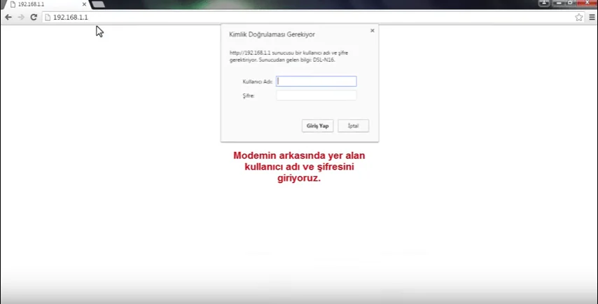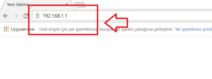 - Tekrar bir internet tarayıcısı açıp, adres satırına 192.168.1.1 yazalım ve Enter‘a basalım.