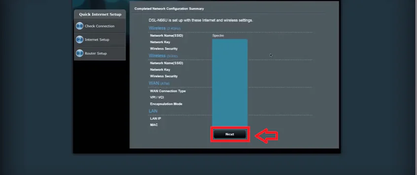Ardından modem kurulumu özeti gelecektir. Girdiğimiz kurulum bilgileri doğru ise Next butonuna tıklayarak kurulumu tamamlıyoruz.