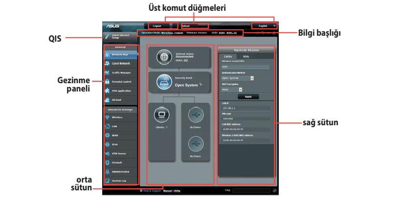 NOT: Web Ara yüzde ilk defa oturum açtığınızda, otomatik olarak Hızlı İnternet Kurulumu (QIS) sayfasına yönlendirilirsiniz.