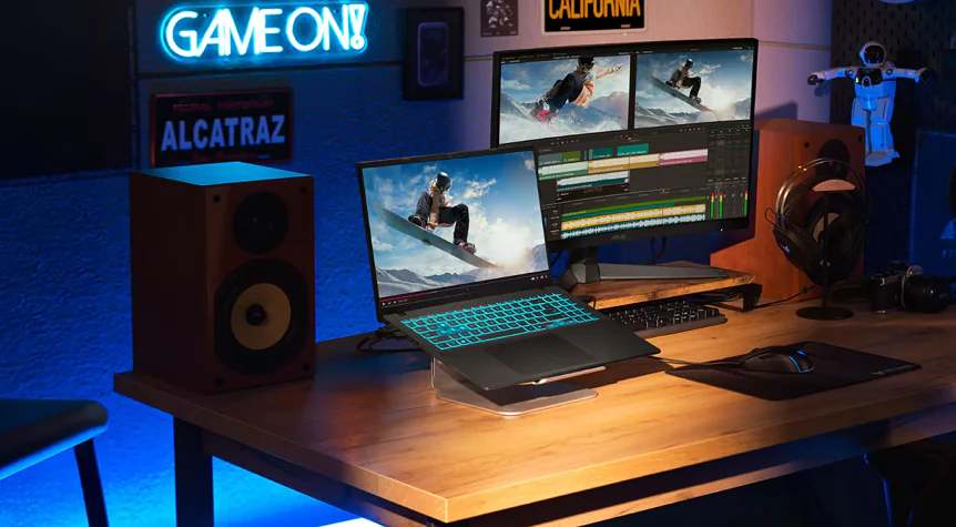 ASUS V16, hem oyun performansından ödün vermek istemeyen hem de profesyonel işlerini aksatmadan halletmek isteyen kullanıcılar için tasarlanmış benzersiz bir cihazdır. Sade ve şık tasarım anlayışı, onu ofis ortamında rahatlıkla kullanabileceğiniz anlamına geliyor. 16:10 en-boy oranına sahip yüksek yenileme hızlı ekranı ve güçlü Intel-NVIDIA donanımı ile oyun deneyiminizi üst seviyeye taşıyor.
