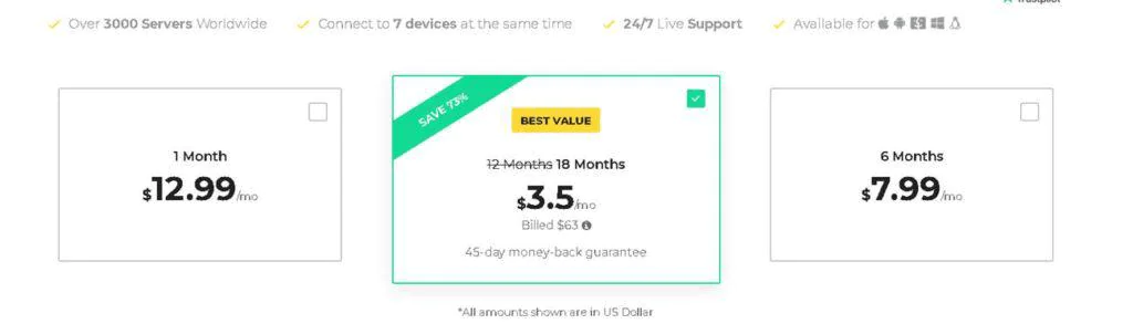 Bant genişliği sınırı, rakipsiz hızlı sunucular ve üst düzey şifreleme olmadan en iyi VPN hizmetini arıyorsanız, CyberGhost’u şiddetle tavsiye ederim. Diğer sağlayıcılardan ayıran çeşitli özelliklere sahiptir. Ek olarak, mükemmel bir destek sistemi ve çok yönlü planları vardır.