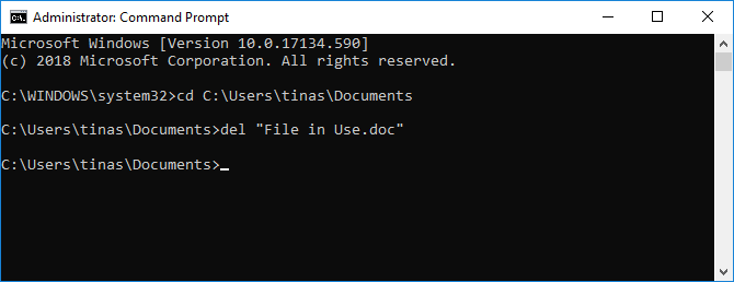 Dosyayı silmek, tırnak işaretleri arasındaki her şeyi gerçek dosya adınızla değiştirmek için bu komutu girin: “Use in Use.doc”