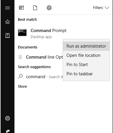 Başlat> cmd yazın> Komut İstemi’ne sağ tıklayın> Yönetici Olarak Çalıştır’ı seçin.