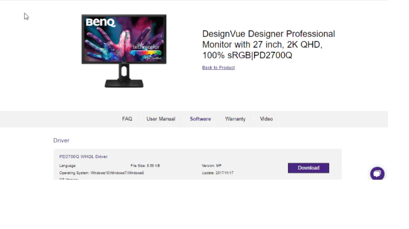 2.Sürücüleri BenQ web sitesinden manuel olarak indirin ve kurun