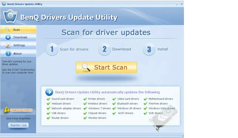BenQ Drivers Update Utility ücretsiz bir yazılım değildir. Ancak yine de güncel olmayan sürücüleri tarayacak bir deneme paketi deneyebilirsiniz. Yalnızca kayıtlı sürüme sahip sürücüleri indirebilir ve yükleyebilirsiniz.